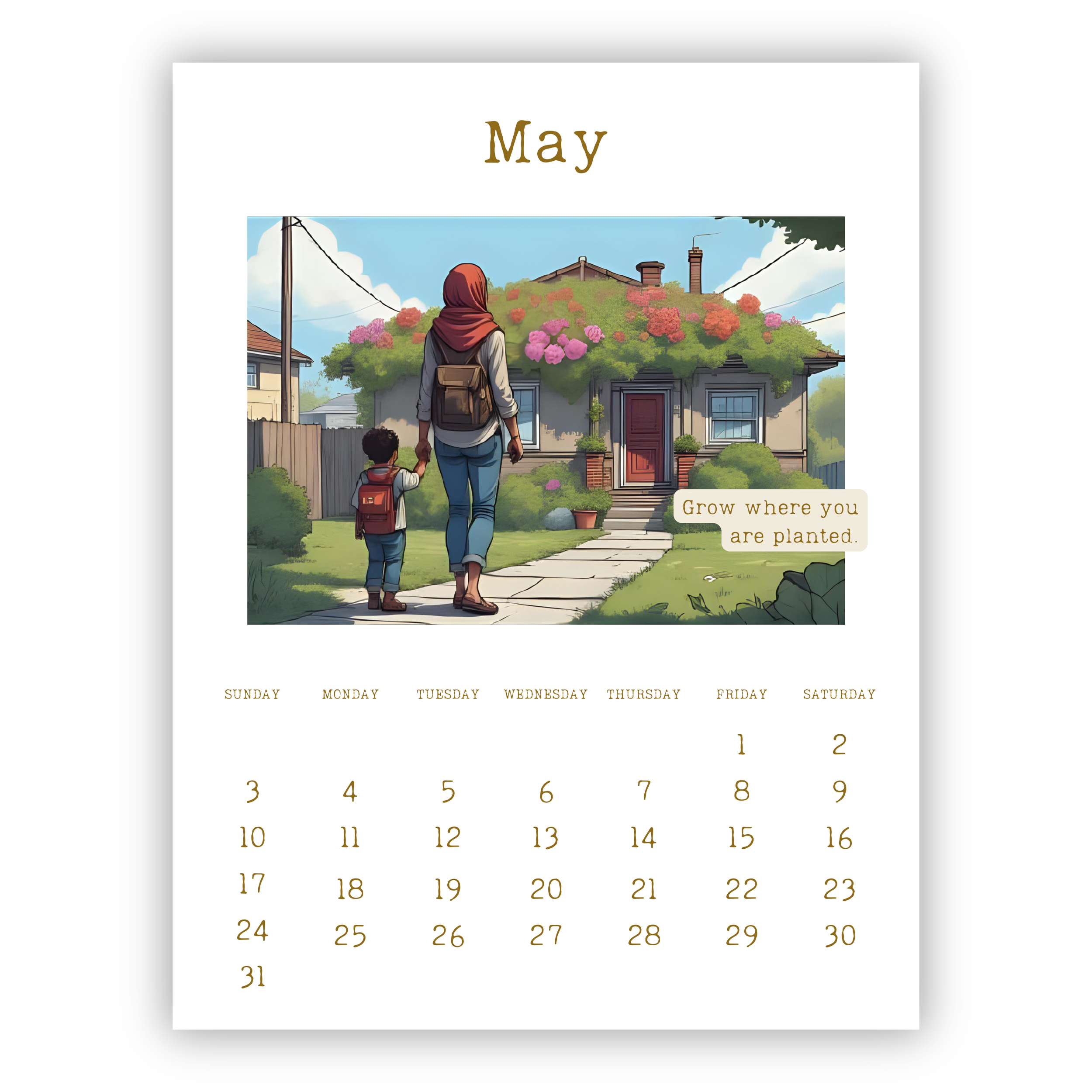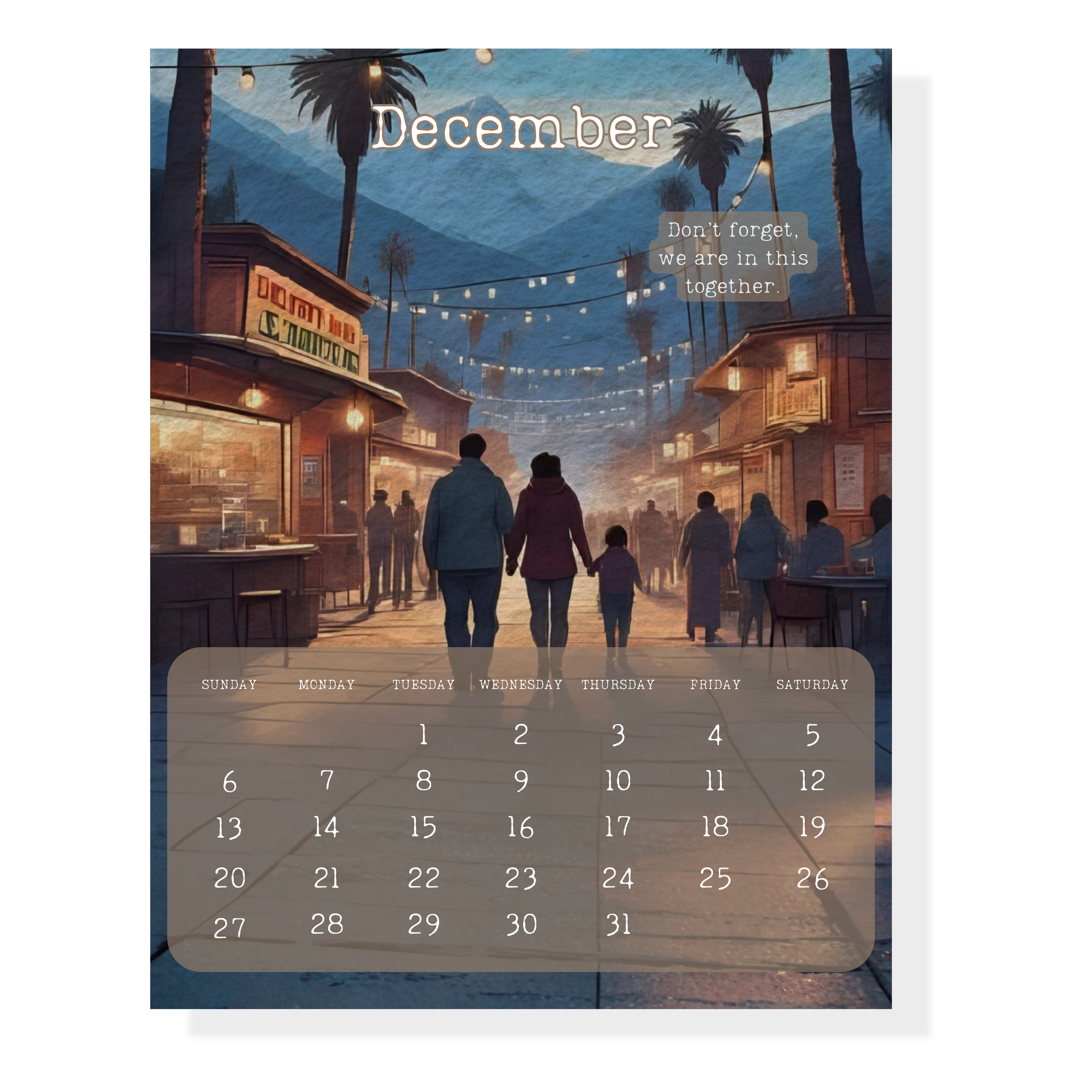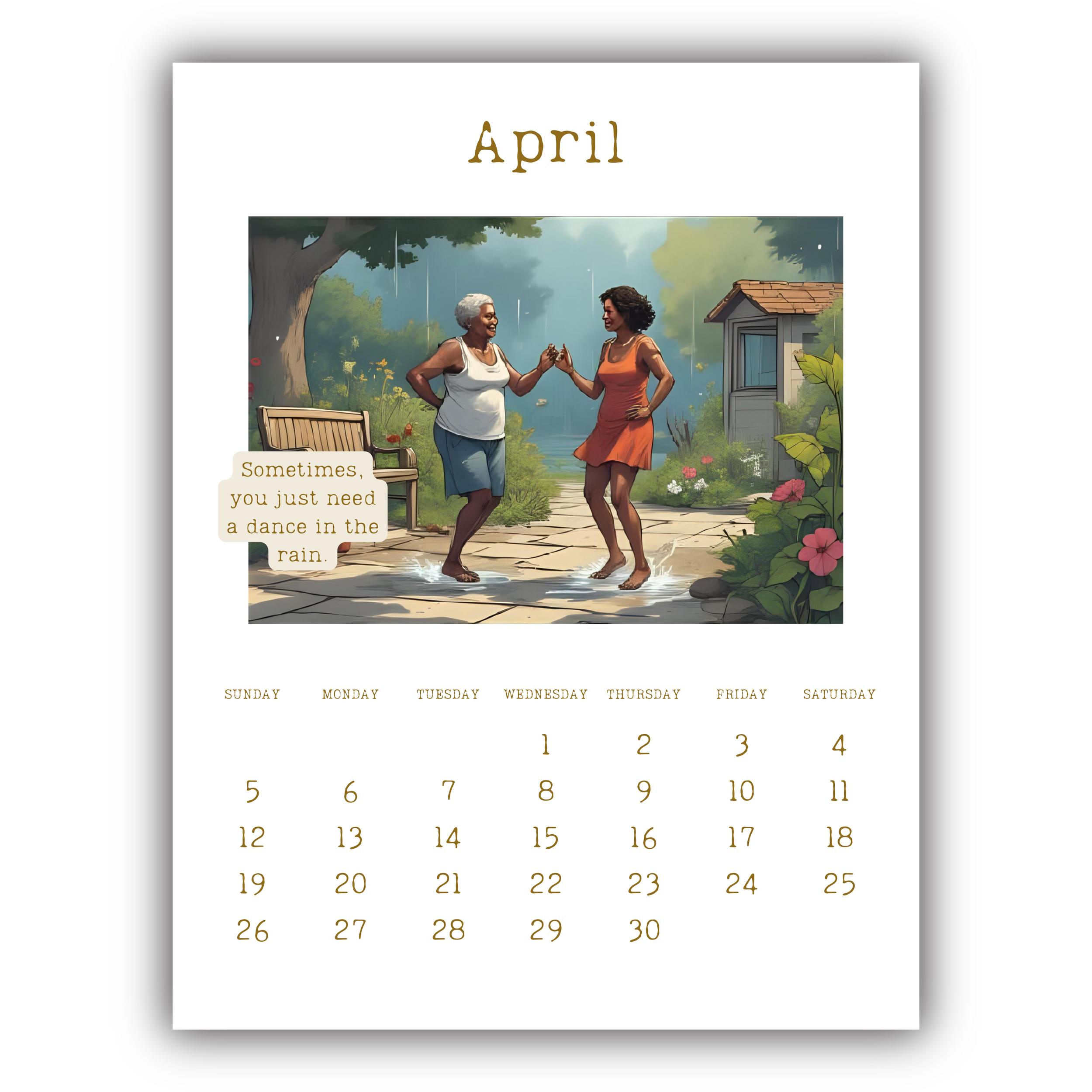A celebration of resilience and empowerment through community, this wall calendar is designed to support mental health and wellness. Printed on matte cardstock and measuring 8.5" x 11", it blends aesthetic elegance and practicality. Each month features inspiring affirmations and artwork that encourage daily reflection and personal growth.