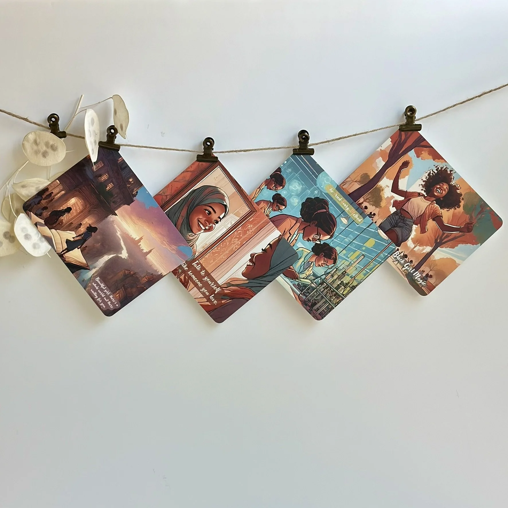 Introducing an inspiring set of four (4) womanist postcards! Perfectly sized at 5.5" x 4.25", with charming rounded corners, these postcards are crafted from uncoated 216-270gsm paper, offering a tactile experience that feels both robust and inviting. Each design celebrates the spirit of womanism with vibrant illustrations and uplifting messages focused on strength, unity, and creativity. Whether you’re sending a quick hello or decorating your space, these postcards are a reminder of the beauty and power within every woman.