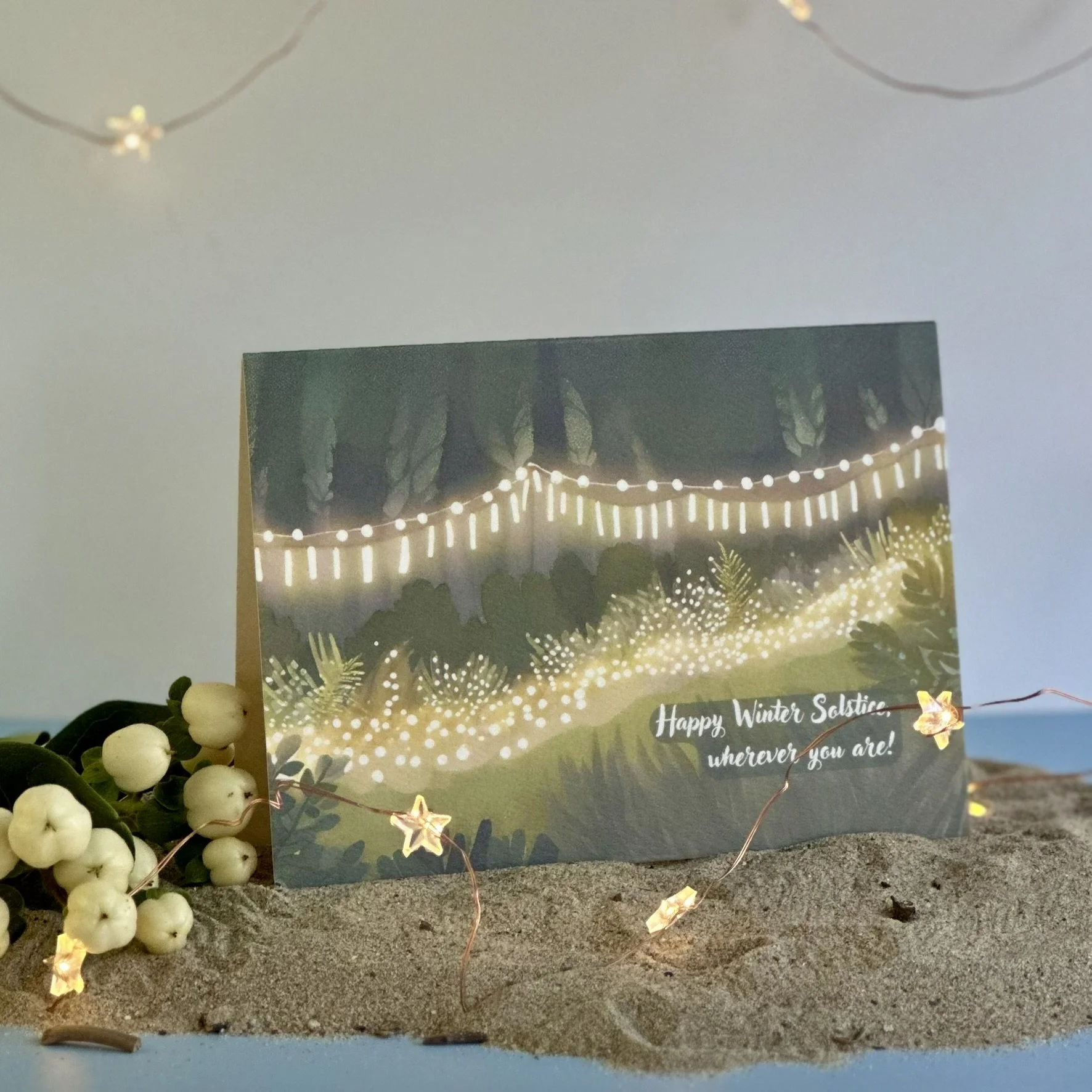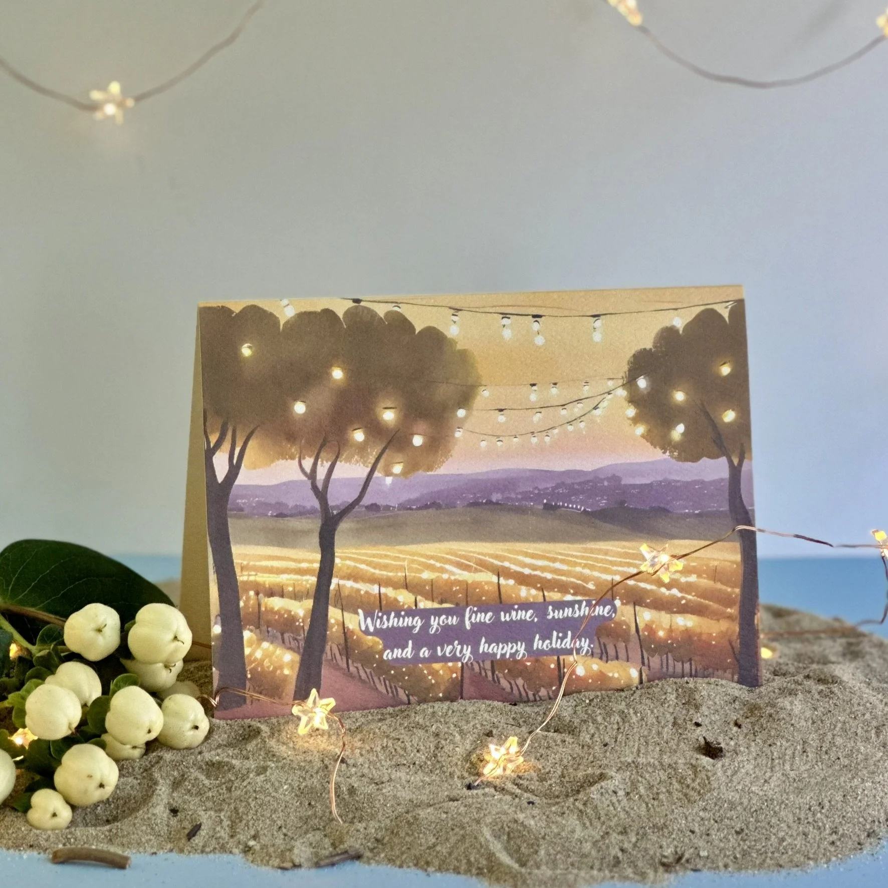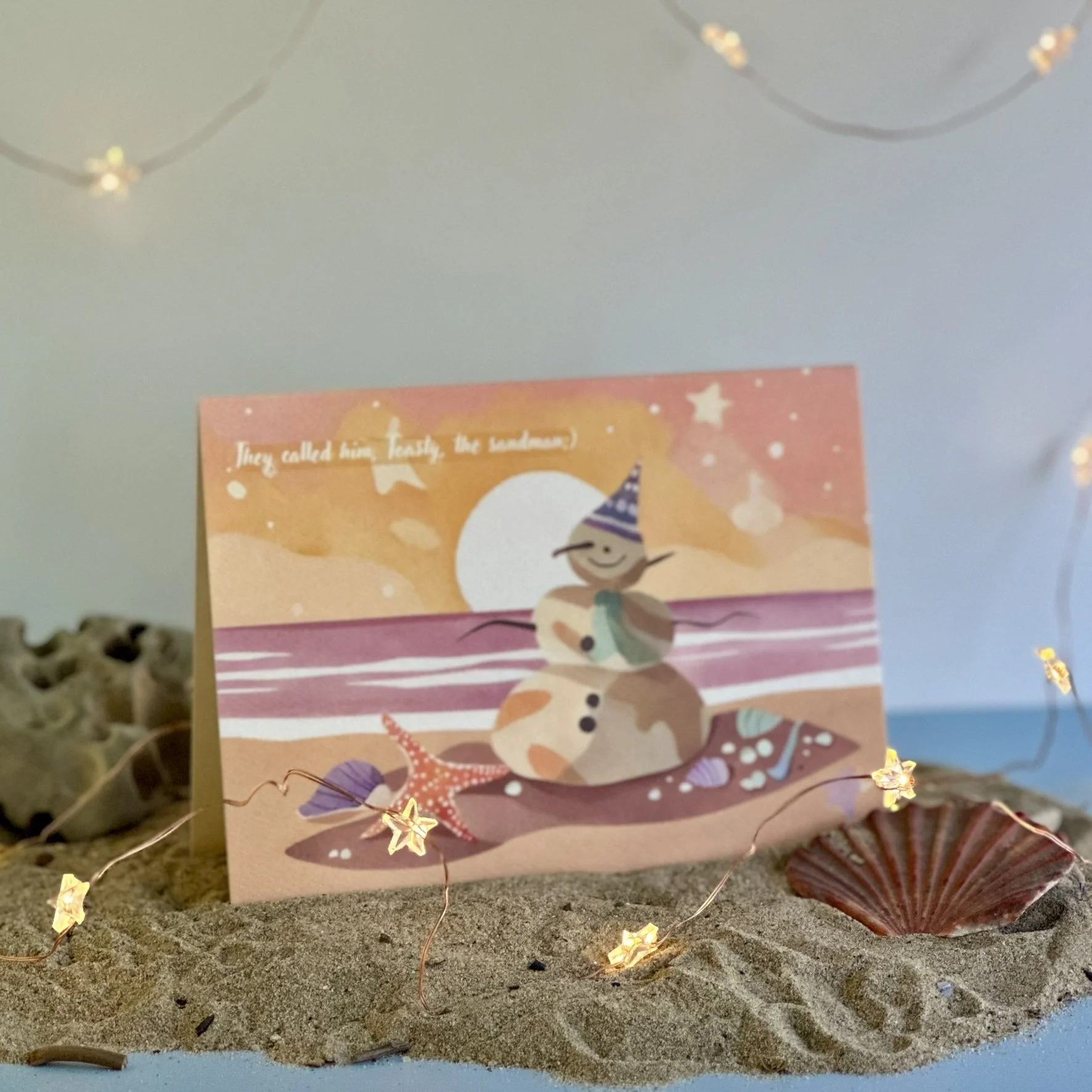 A charming collection of holiday cards designed for those who live (or wish they lived) in sunny climes. From holiday cacti to a cheerful “sandman,” this delightful set of five (5) 4.5"x6.25" folded cards is printed on luxurious 100# natural felt-weave paper and accompanied by five Kraft Speckletone envelopes. They’re perfect for spreading joy and sunshine to friends and family at the holidays.
