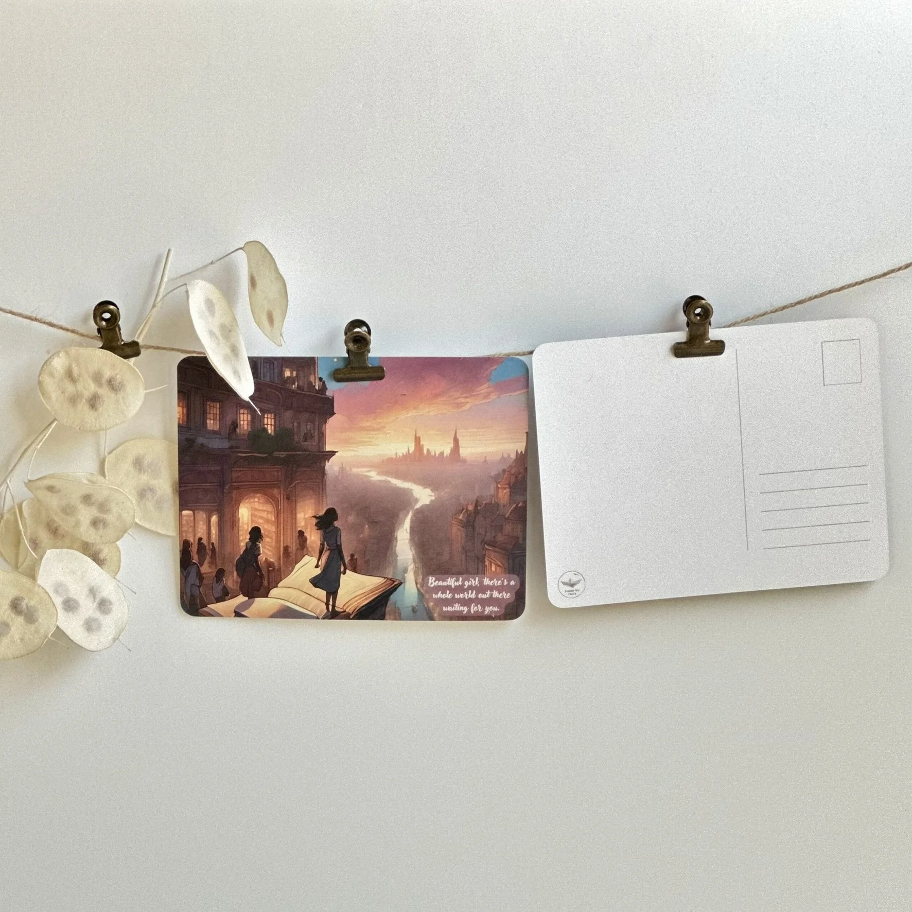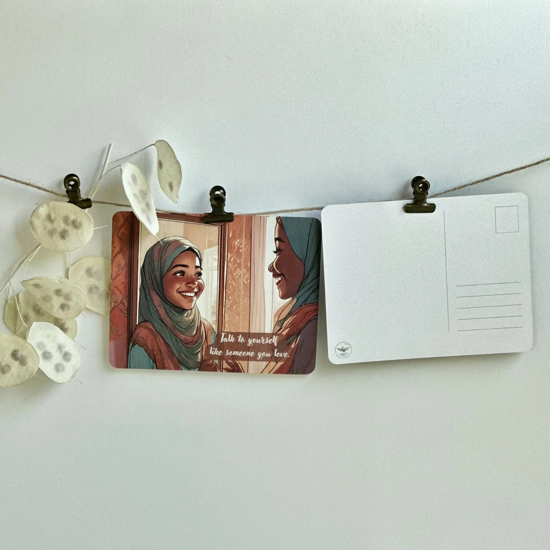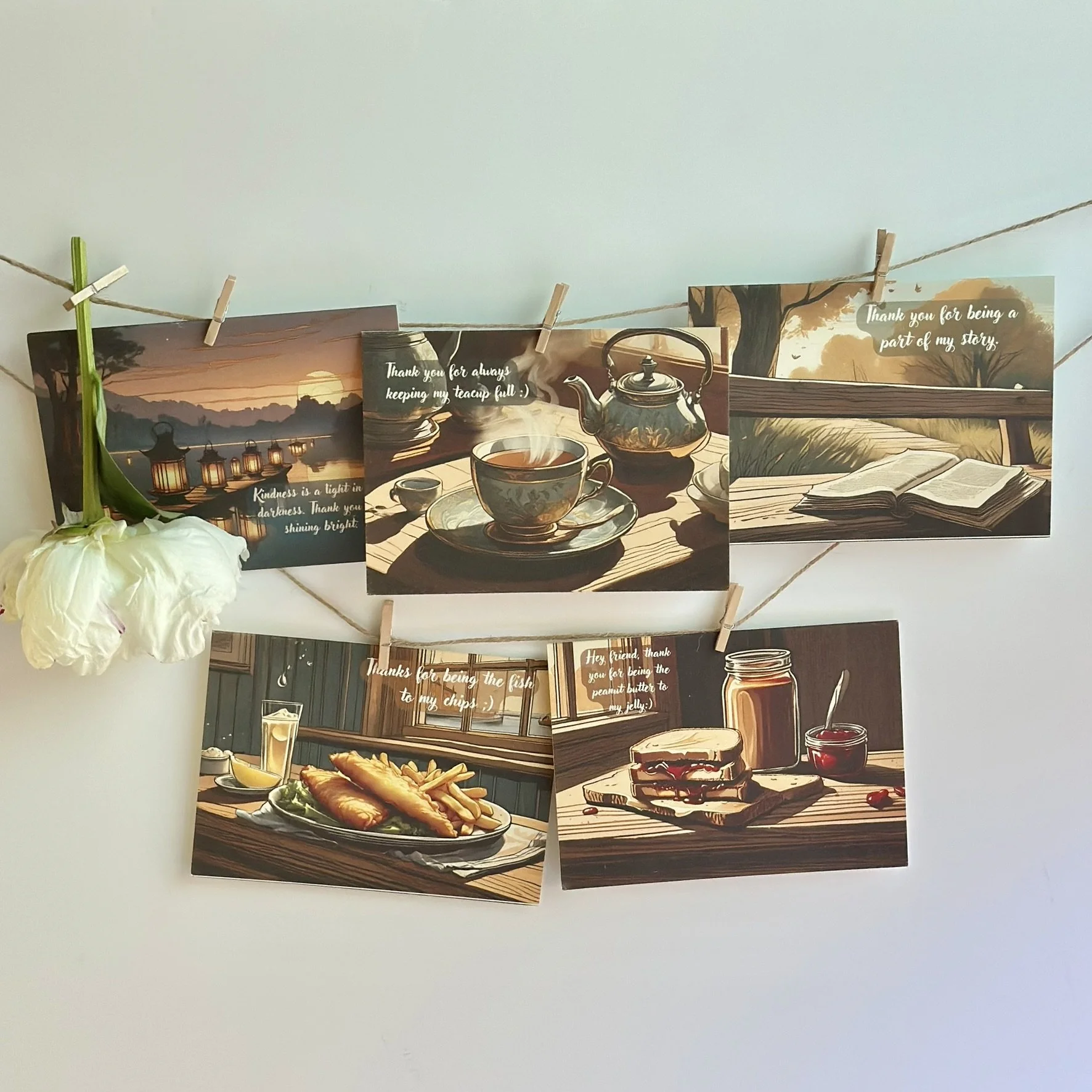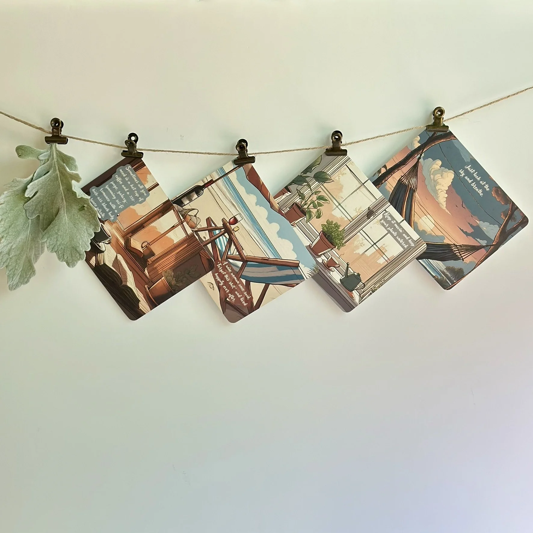 Uplift spirits and spread some much-needed joy with these four (4) well-being postcards! Each 5.5" x 4.25" card has elegantly rounded corners and is crafted from premium uncoated 216-270gsm paper, offering a smooth and tactile feel. The collection features whimsical illustrations paired with heartwarming messages that remind us to embrace the little joys in life. Keep them handy for moments when you want to brighten someone’s day with a touch of warmth and positivity.